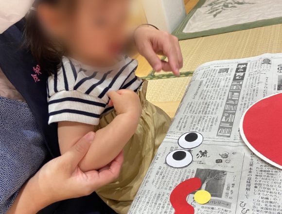 雨の日はお部屋で楽しめる新聞遊びをしました。(*^^*)新聞紙をちぎったり、パラパラ紙吹雪をして…