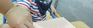毎月行っている手型製作、仕上げは子どもたちにシールを貼ってもらいます。 シールの種類や色を自分で選んで、好きなところに貼ってもらいます。 とってもかわいい作品ができました。