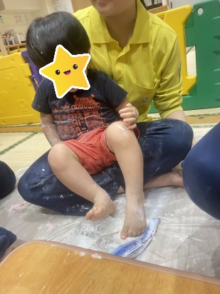 手や足で思い切り片栗粉の感触を楽しめました🕺🏻